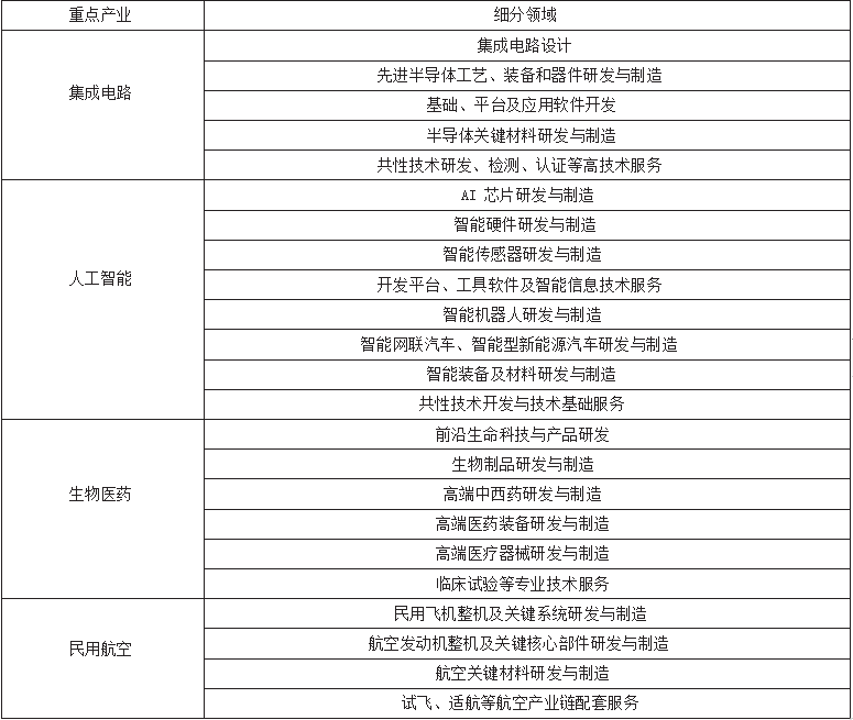 新片區集成電路、人工智能、生物醫藥、民用航空