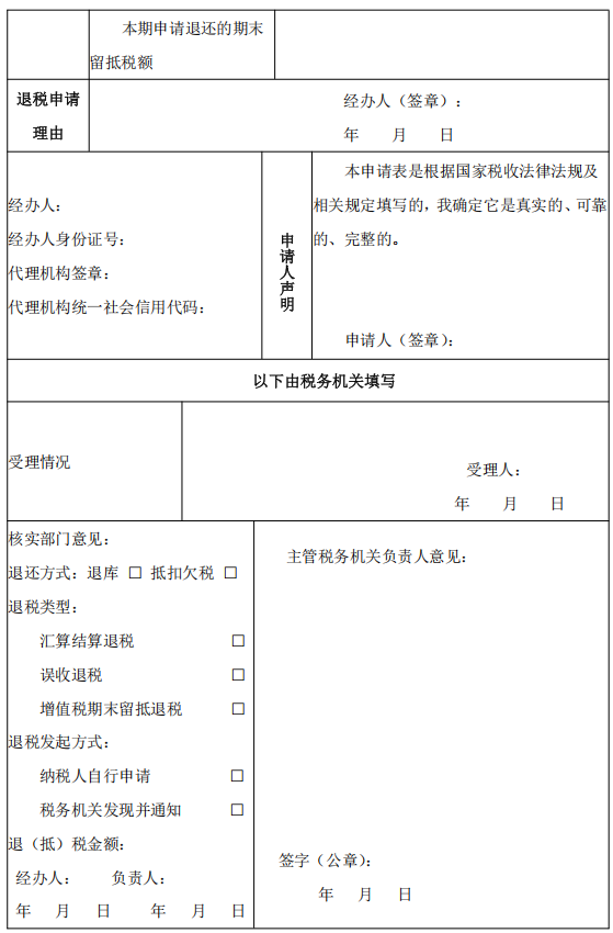 一、本表適用于辦理匯算結算、誤收稅款退稅、增值稅期末留抵退稅。